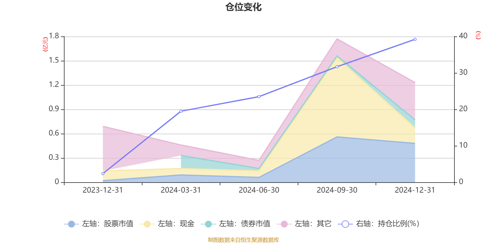 据定期报告数据统计,成立以来平均股票仓位为23.25%,同类平均为45.78%。2024年末基金达到39.21%的最高仓位,2023年末最低,为2.37%。