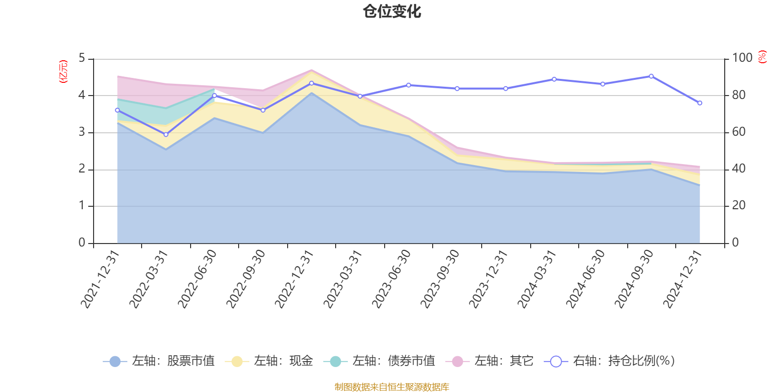 据定期报告数据统计,近三年平均股票仓位为81.08%,同类平均为84.96%。2024年三季度末基金达到90.57%的最高仓位,2022年一季度末最低,为58.96%。
