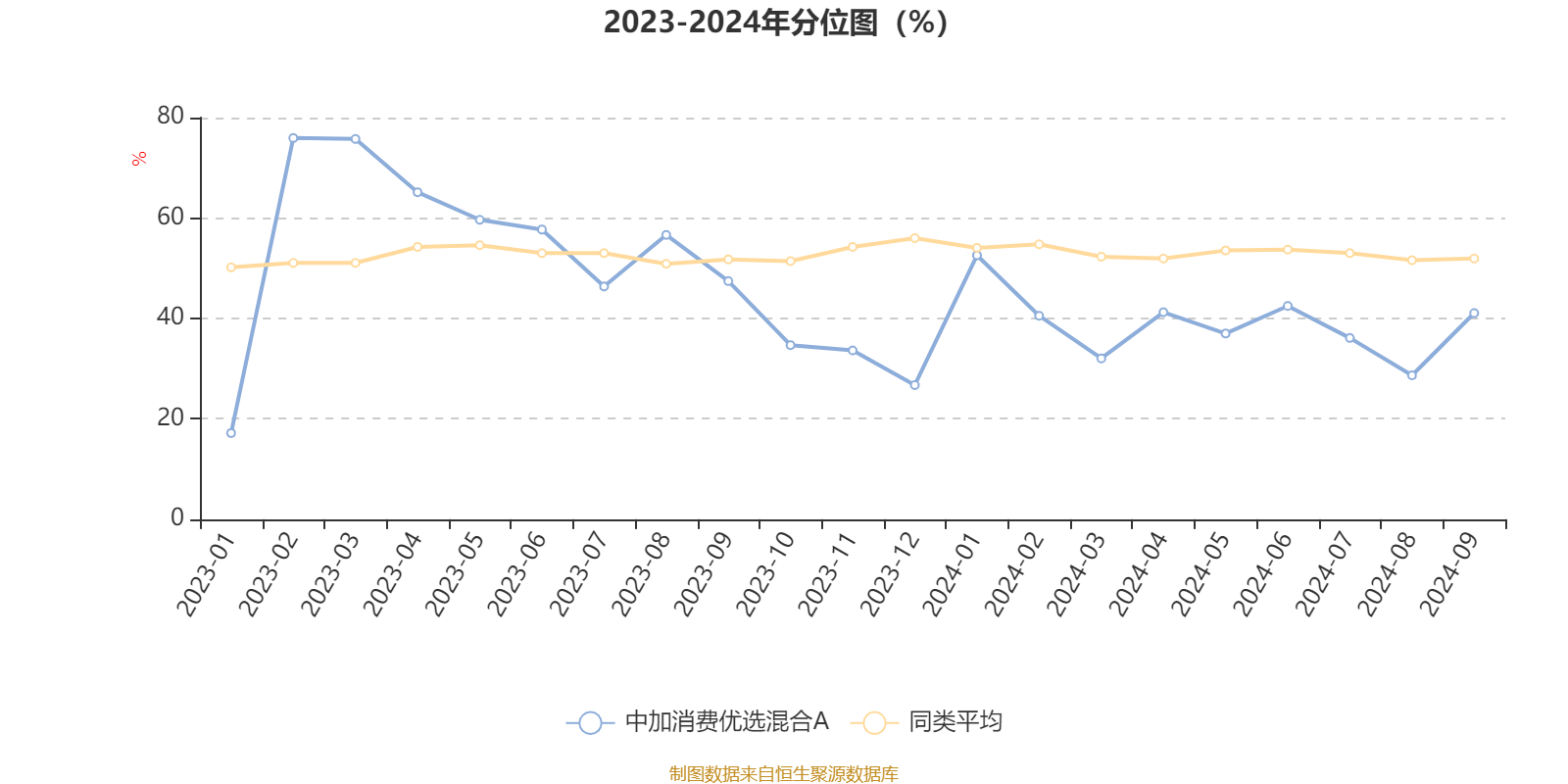 通过所选区间该基金净值增长率分位图,可以观察该基金与同类基金业绩比较情况。图为坐标原点到区间内某时点的净值增长率在同类基金中的分位数。
