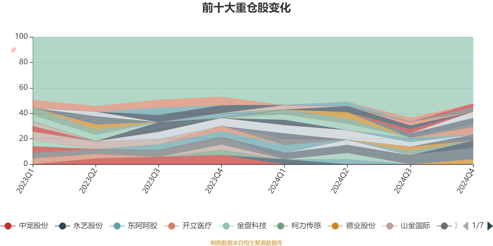 截至2024年四季度末,基金十大重仓股分别是美的集团、泡泡玛特、寒武纪、海澜之家、格力电器、思源电气、德业股份、名创优品、宇通客车、永辉超市。